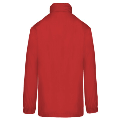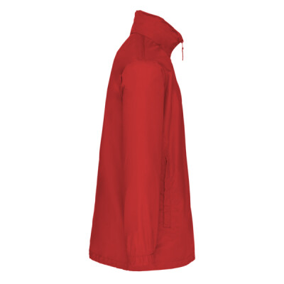 Concealed hood with tear release fastening tab. 2 front zipped pockets. Drawstring at bottom. Elasticated cuffs. K-Way® foldaway jacket system. Full front zip.