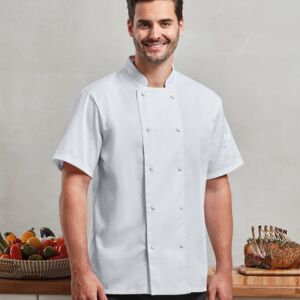 U voegt een decoratie toe aan de Voorkant Linker borst van de Chefs Coolchecker® short sleeve jacket.