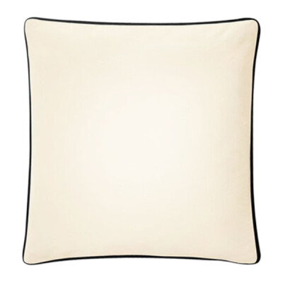 U voegt een decoratie toe aan de Voorkant van de Fairtrade cotton piped cushion cover.
