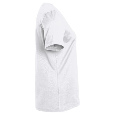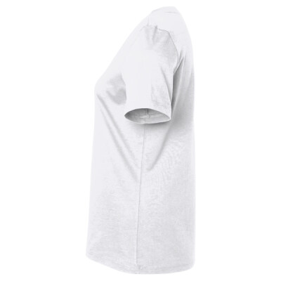 Feel good women's stretch t-shirt with enzyme wash for unique soft hand-feel. 96% cotton, 4% elastane for improved fit, comfort and shape retention. Modern long-line fit. V-neck with back neck binding and soft stretchy rib neckline. Features new tearable